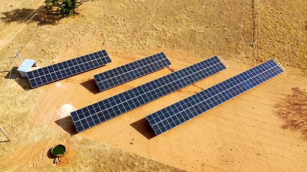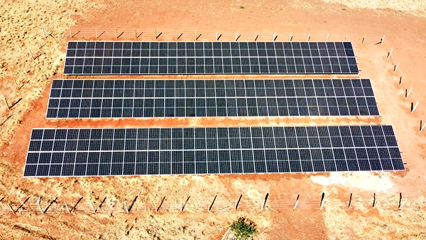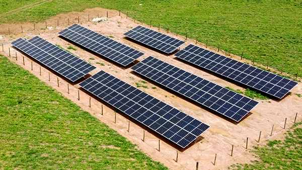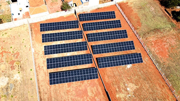 Um sistema de energia solar de grande porte construído para a produção de energia elétrica.